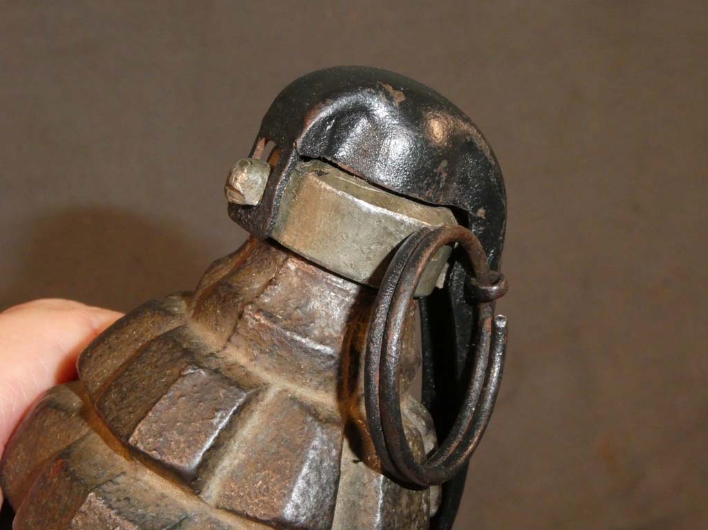INERT WWI FRENCH F1 HAND GRENADE W/ BILLANT FUSE