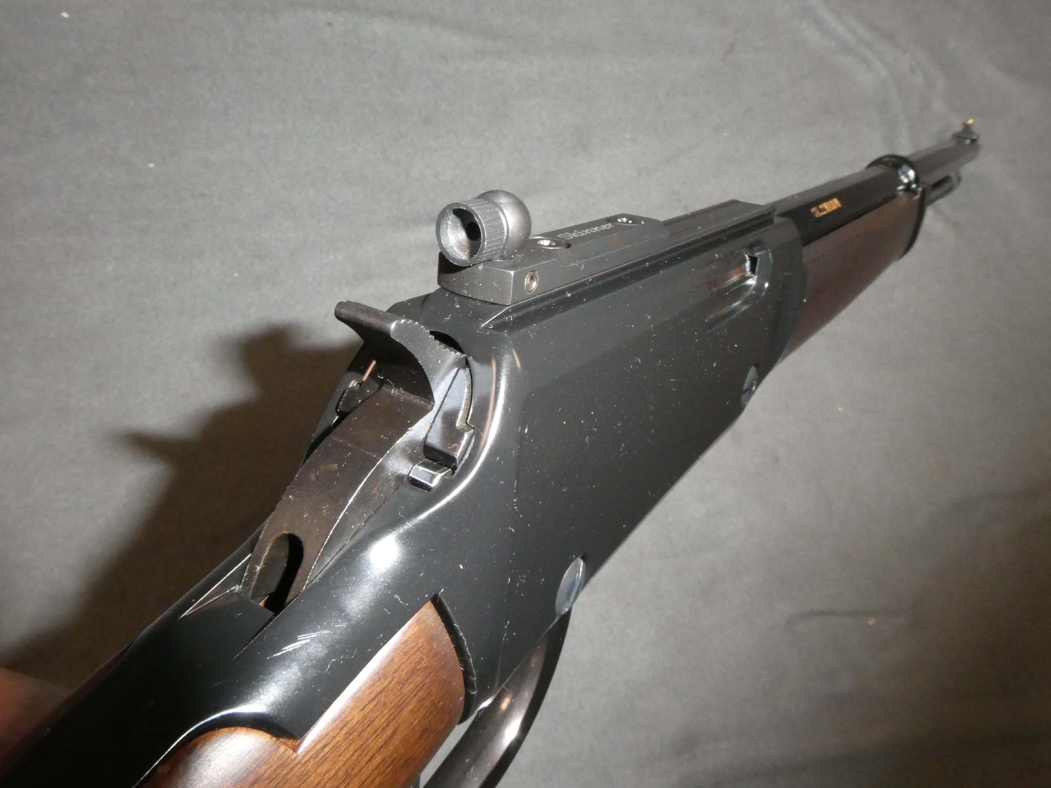 This is a Henry Repeating Arms Company Small Game Carbine chambered for the .22 Winchester Magnum Rimfire cartridge. This is a lever action rifle feeding from a 7-round tubular magazine. It has a 17-inch blued steel, octagonal barrel. It has an adjustable Skinner rear peep sight, and a brass beaded front sight. This gun is fitted with a large loop lever. It is in very fine to excellent condition with about 98% of its black/blued finish remaining. There are just a few very small scratches on the right side of the receiver just above where the lever attaches. The bore and mechanics are excellent. The stock is very fine to excellent with one light scratch on the left side of the butt. This is the first one of these that I have handled, and I believe it is exactly what its name says- a superb, little, small game carbine. Stock no. 31209
