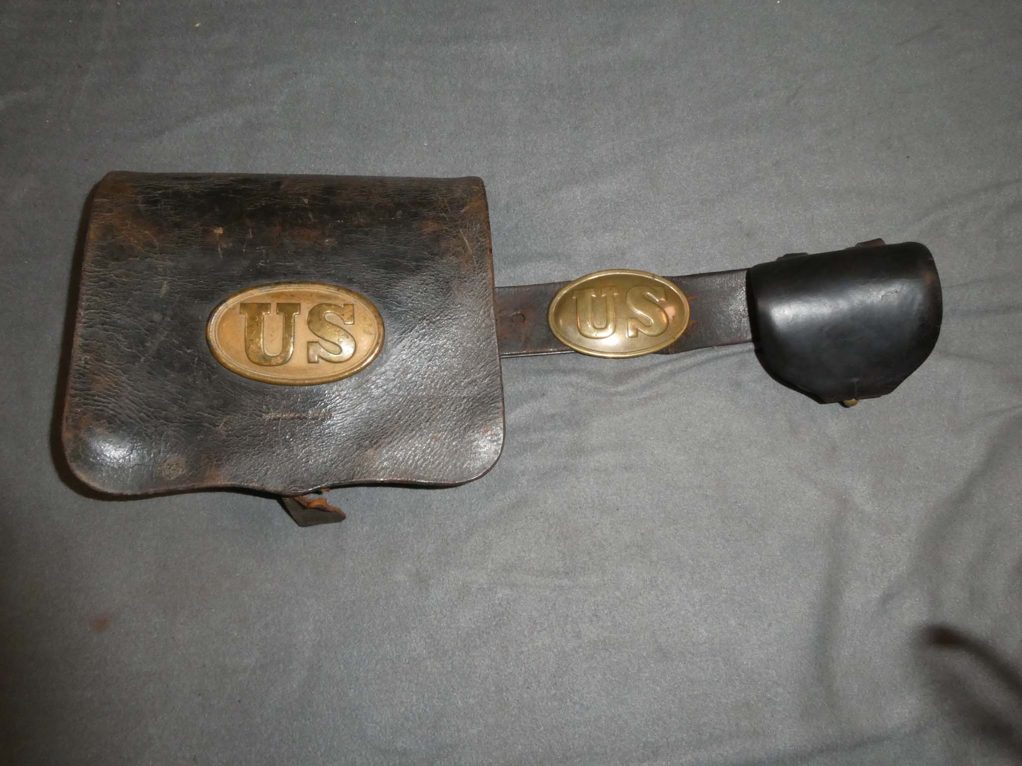 ORIGINAL U.S. CIVIL WAR CARTRIDGE BOX, .58 CAL. W/ TINS, BELT, CAP POUCH, & 2 PLATES