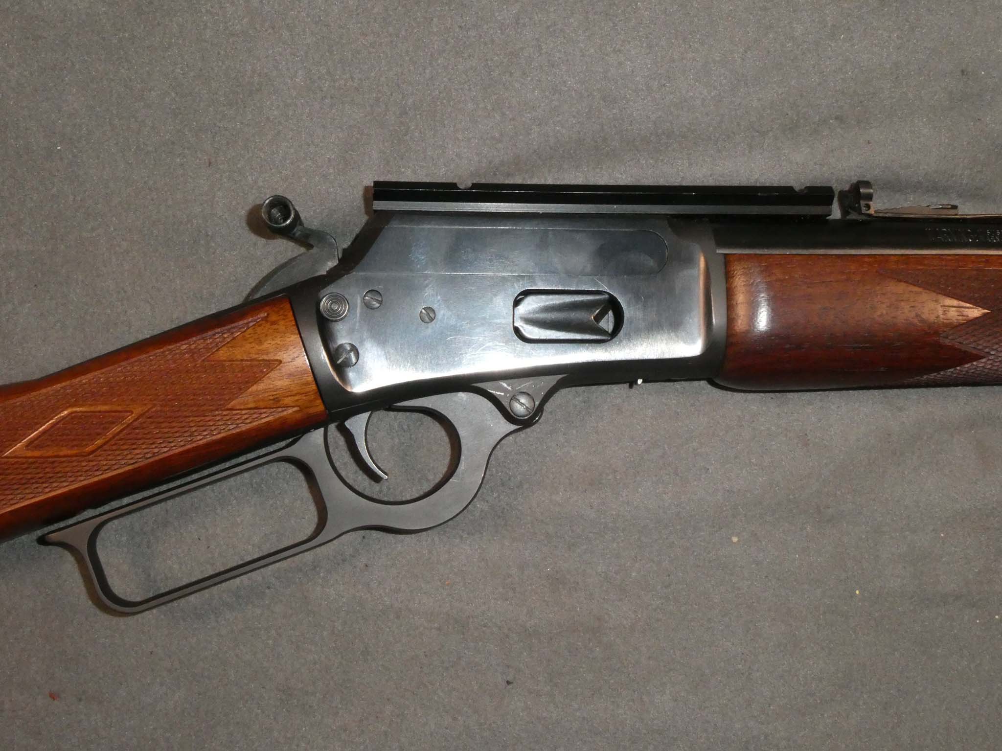 Here is a Marlin Model 1894S Lever Action Rifle chambered for the .44 Remington Magnum cartridge. It will also accept .44 Special cartridges. This rifle has a 20" barrel and feeds from a 10-round tubular magazine. These were discontinued in 2002. This rifle is in very fine to excellent condition. It retains nearly 100% of its factory blued finish with just a very, very tiny ding or two on the edge of the lever. The bore and mechanics are excellent. The checkered walnut stock and forearm are excellent, as well. The gun has been fitted with a scope rail and hammer extension for use with a scope. Both are removeable and the barrel sights are still there for those who prefer old school. This is a beautiful 1894S in outstanding condition. Stock no. 31675