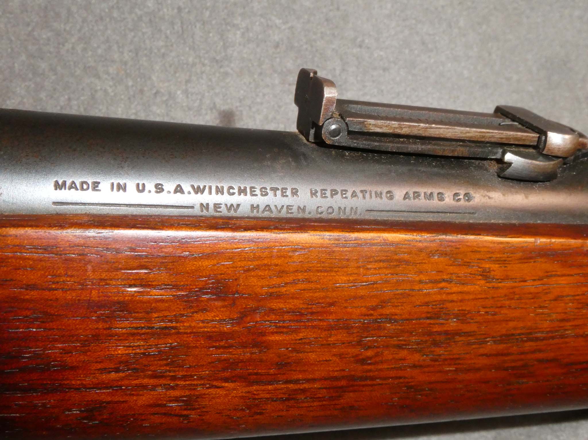 Here is an original, Winchester Model 1892 Saddle Ring Carbine manufactured in 1929 and chambered for the .25-20 cartridge. The 1892 Winchester was scaled down from the John Browning designed Model 1886. It was meant as a replacement for the Model 1873 and was initially offered in the same three calibers, .32-20, .38-40, and .44-40. The .25-20 chambering was added in 1895. The Model 1892 was a superb rifle and proved to be very popular. It was produced from 1892 until 1941 with over 1,000,000 produced. This is a saddle ring carbine with a 20" round barrel. It is in fine condition with 60-70% of its factory blued finish remaining. The barrel and magazine tube retain most of their finish with a few small rust specks in places. The receiver has about 50% of its blue remaining which is turning or has turned brown. The remaining blue is on the sides and is developing a brownish cast. The lever and butt plate have a smooth brown patina with blue color remaining in protected areas. The bore and mechanics are excellent. The stock and forearm are in fine condition with a few small dings and dents from use. The ring loop itself is there, but the ring is missing. This is a good-looking Model 92 in nice condition. Stock no. 31715