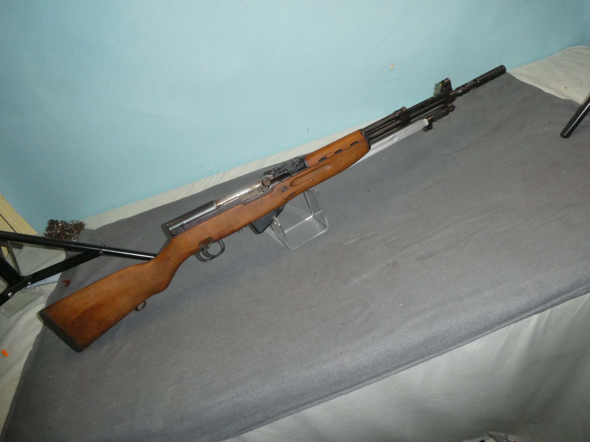 This is a M59/66 PAP Rifle manufactured at Zastava, Serbia and chambered for the 7.62x39mm cartridge. This is a Yugoslavian licensed copy of the Soviet SKS rifle. PAP stands for poluautomatska puška, which is Serbo-Croatian for "semi-automatic rifle". The M59/66 has a permanently attached grenade launcher and folding sight. The launcher also functions as a muzzle brake. These were produced from 1961 until 1986. This rifle is in very good to fine condition with about 85% of its black factory finish remaining. There is some finish wear on the gas tube and barrel. There are some small rust spots on the grenade launcher sight and the magazine. The gun has excellent mechanics with all matching numbers. There is rust staining on the bolt. The bore is excellent. The stock is very good with a few small dings and scratches from use. This is a nice variant of the SKS rifle. Stock no. 32032