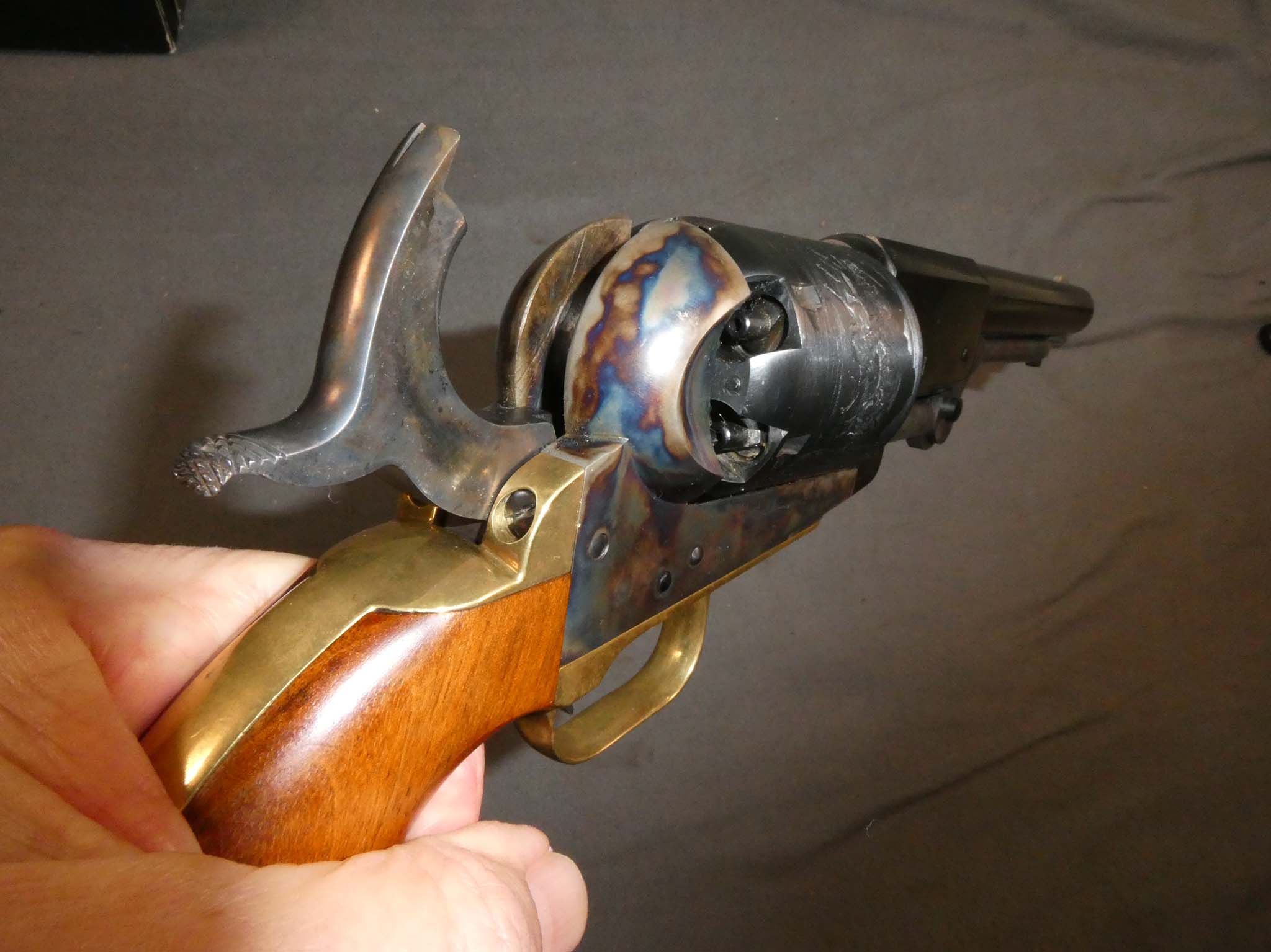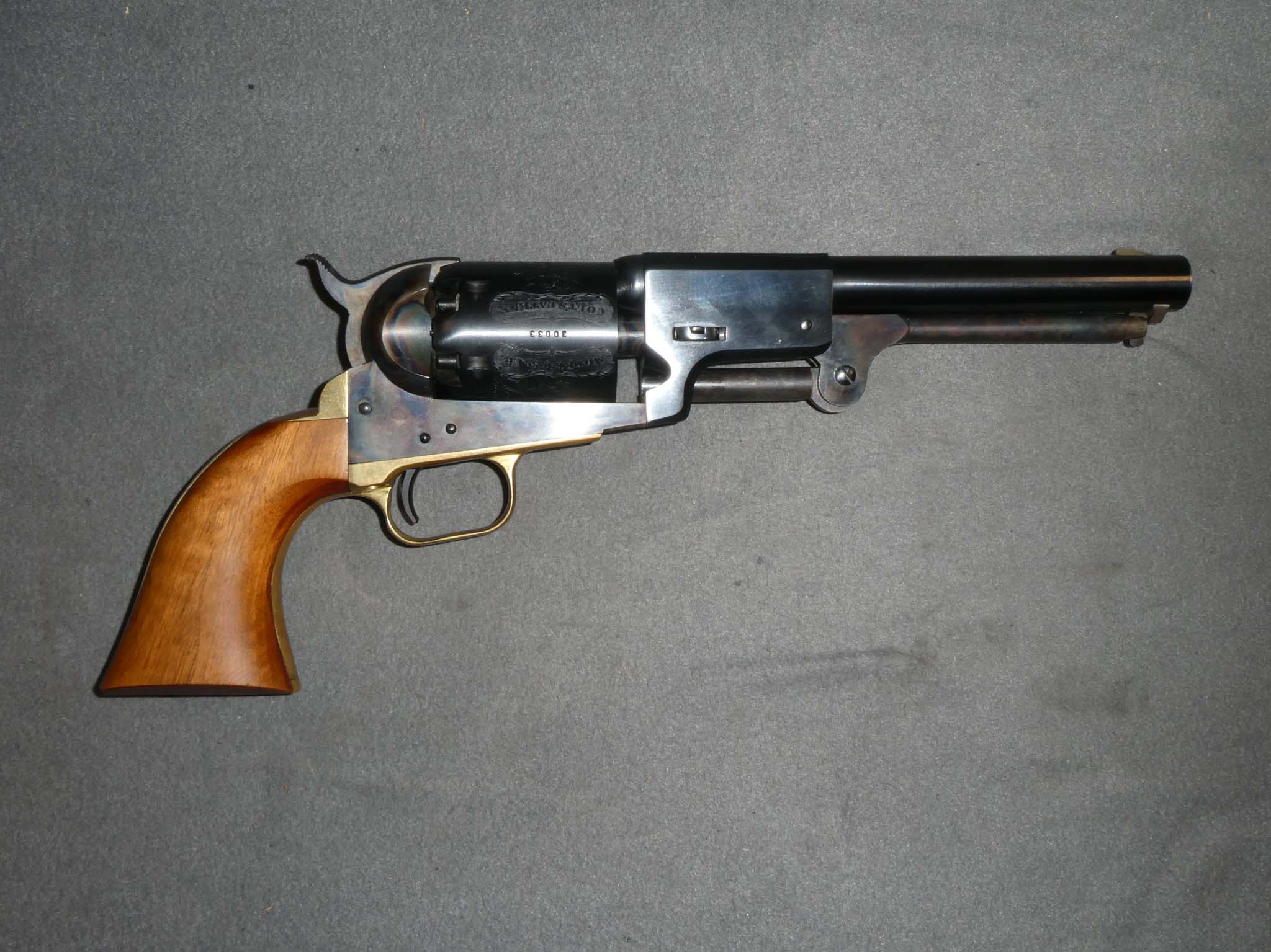 Here is a Colt 3rd Model Dragoon Revolver made by Colt in about 1980. It is .44 caliber. This is a 2nd Generation Colt. Colt considers these revolvers to be actual Colts and these guns will letter. They are superbly fit and finished with real bone case color on the frames and a polished blued finish on the barrels and cylinders. These 2nd Generation Colt Black Powder guns closely replicate the originals, right down to the markings. There are no extra proof marks or warnings like on the Italian replicas. This revolver is in excellent condition, unfired in the original box. It retains nearly 100% of its factory blued and case-colored finishes. The bore and mechanics are excellent, as are the grips. The original box is in good condition with the paperwork. There is moderate scuffing of the corners and edges of the box. The thin foam cover is missing. This is a beautiful revolver and as close to an original as you can find. Stock no. BCL