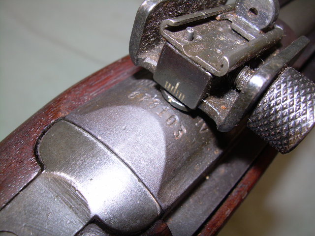 Here is an original, WWII, U.S. M-1 Carbine manufactured by the Inland Division of General Motors in 1943. It has undergone a post-war rebuild to upgrade the gun with an adjustable sight and bayonet mount. The carbine is in fine condition with about 95% of its parkerized finish remaining. There is a touch of wear at the muzzle and the majority of the rest is on the butt plate. The bore and mechanics are excellent. The stock is very good to fine with a few small dings and scratches from use. It is stamped "IO" in the sling well and a faint Ordnance Wheel cartouche is visible on the right side of the butt. Included is an original US military web sling in fine condition. There is NO magazine included, but they are not hard to find. This is a nice, U.S. military issue M-1 Carbine. Stock no. 29893